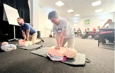 La seconde partie consiste en des ateliers pratiques, tels que le bouche-à-bouche et la réanimation cardiaque.