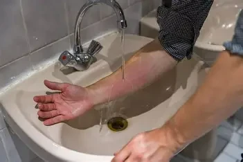 La priorité reste le refroidissement de la brûlure. Il est recommandé de passer la zone atteinte sous de l’eau tempérée (ni froide ni glacée) pendant environ 15 à 20 minutes. Cette action permet de limiter la propagation de la chaleur dans les tissus et de réduire la douleur. Toutefois, si le corps étranger est chimique (comme une poudre), il ne faut pas utiliser d’eau immédiatement ; il convient d’abord d’éliminer le produit à sec, en se protégeant, avant de procéder au rinçage.
